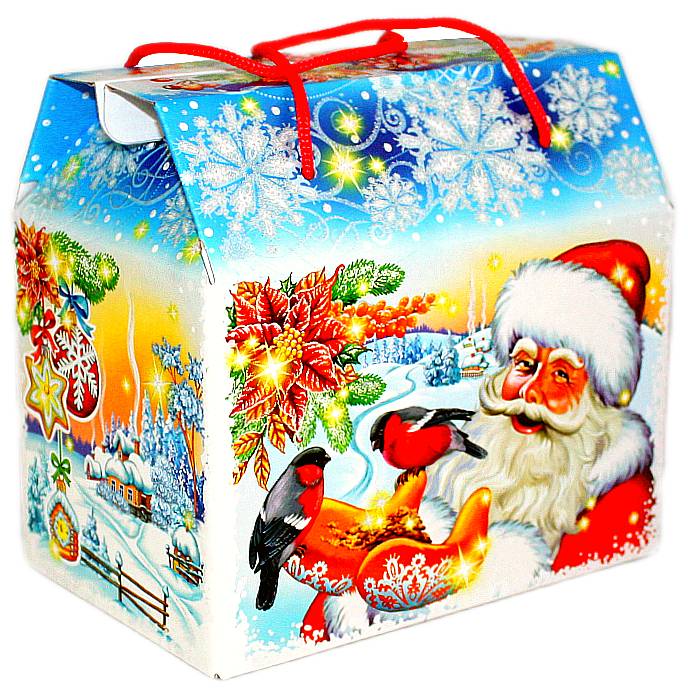 Сладкий новогодний подарок в картонной упаковке весом 1000 грамм