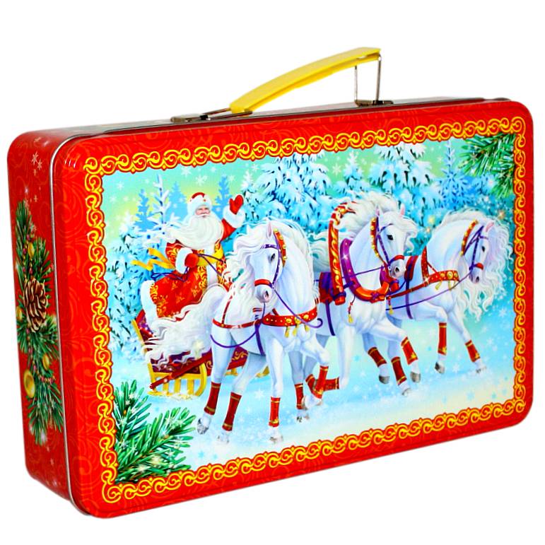 Сладкий новогодний подарок в жестяной упаковке весом 1000 грамм