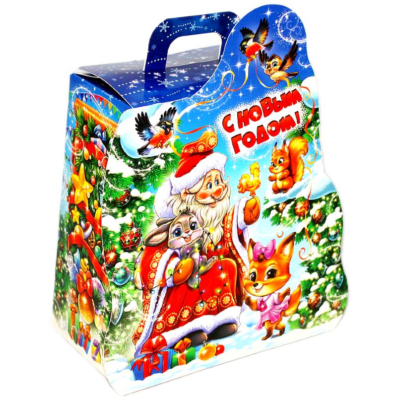 Сладкий новогодний подарок в картонной упаковке весом 750 грамм