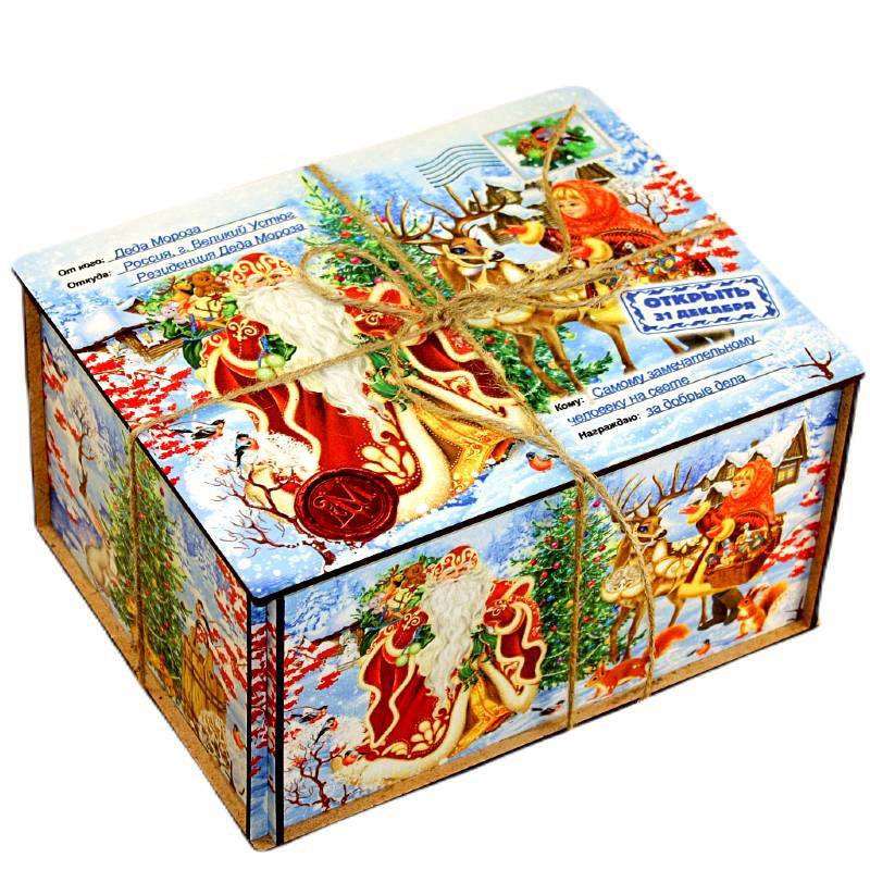 Сладкий подарок на Новый Год в  упаковке из дерева весом 1000 грамм
