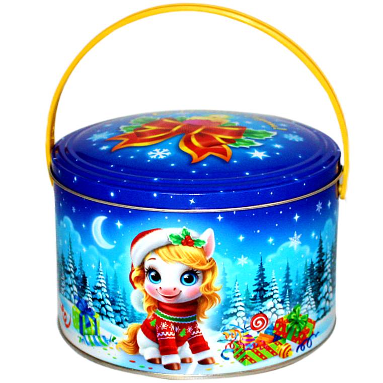 Сладкий новогодний подарок в жестяной упаковке весом 600 грамм
