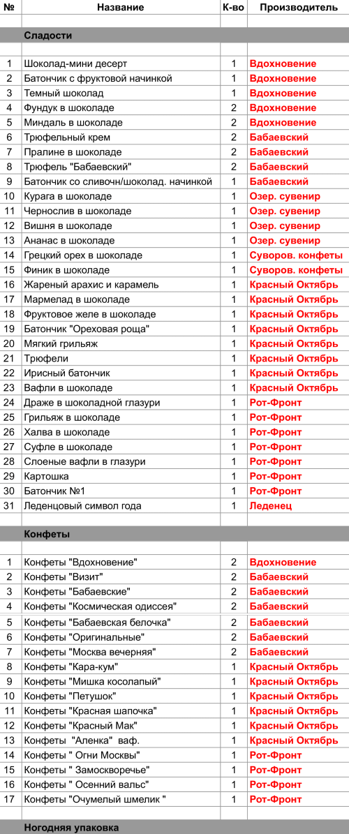 1. Проверить, можно ли внести изменения в состав подарка. Если нет, то скорее всего наборы были собраны еще летом из конфет, произведенных еще раньше